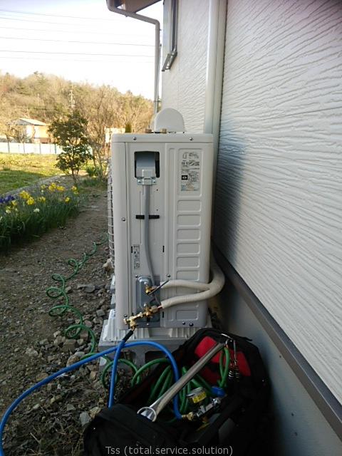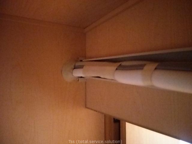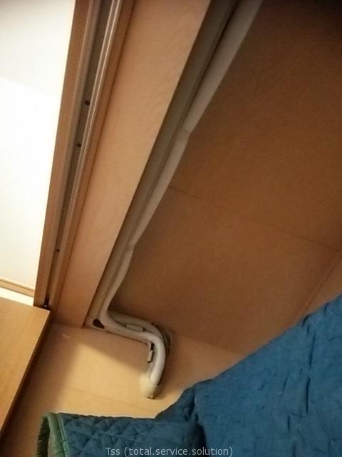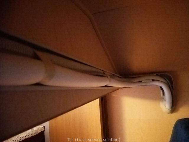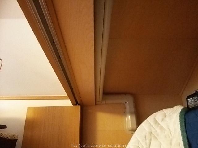 クローゼット内を二ヶ所貫通して、露出配管にて屋外へ配管をもっていきます。