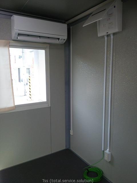 - プレハブ事務所内、分電盤取付・各コンセント取付