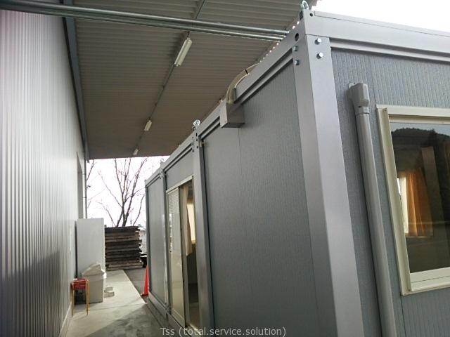 工場内の電灯盤から幹線を引き込み、プレハブ内に分電盤を設け、