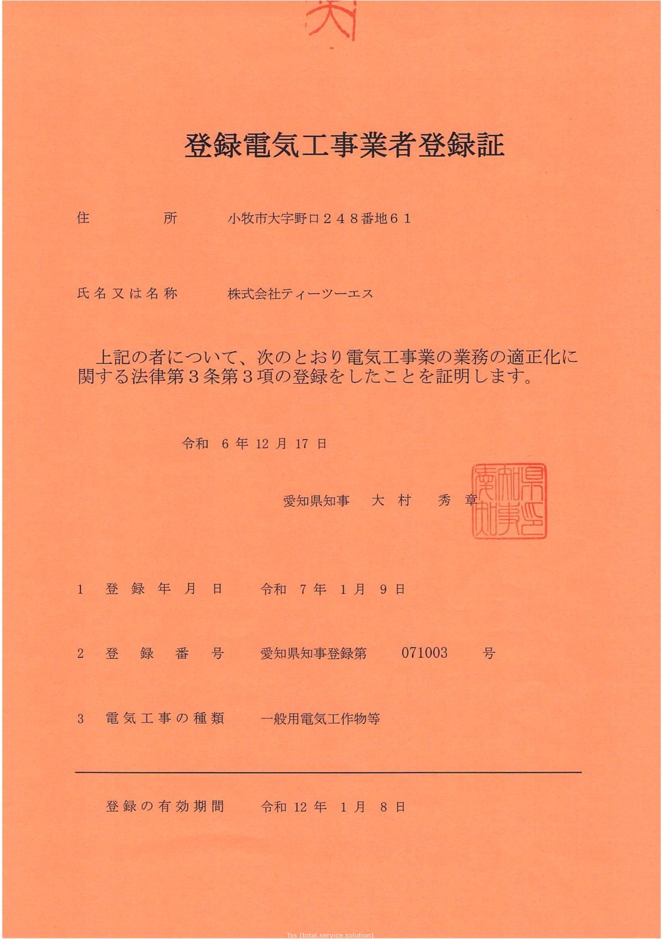 | 登録電気工事業者 愛知県知事登録 第071003号 |