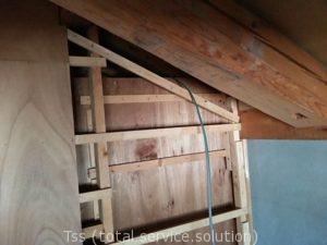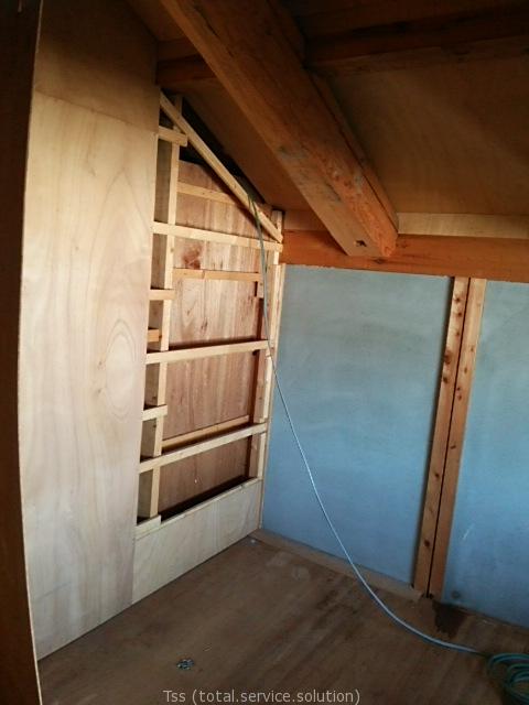 - 小屋裏 壁、二ヶ所貫通、屋根置き工事