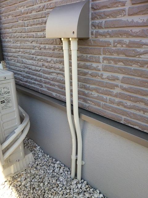 - VE管 S曲げ仕上げ、エアコン室外機裏埋設配管