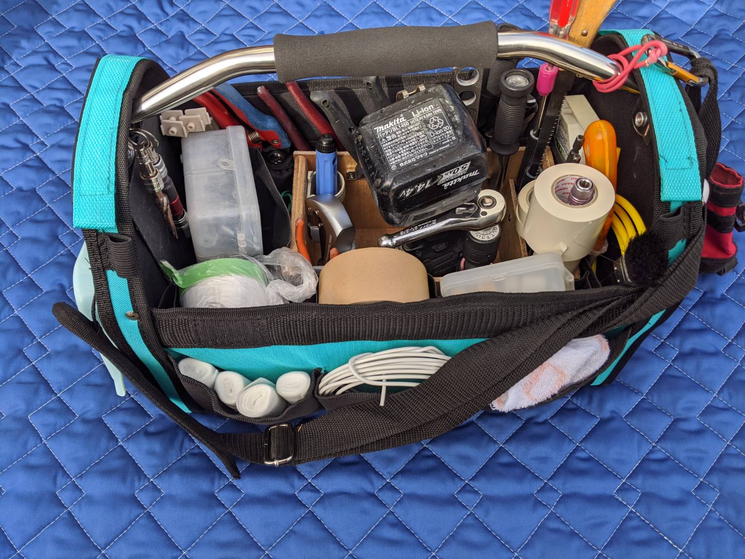 最初は、基本的な工事の流れ、工具・部材の説明、使用方法を学びます。