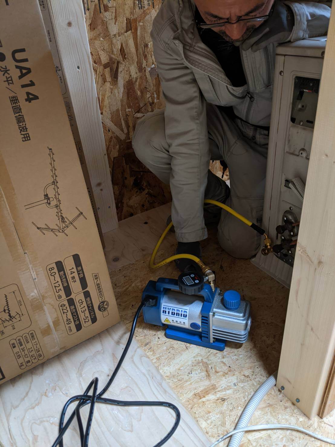 実際に、真空ポンプで真空引き作業をしていただきます。
