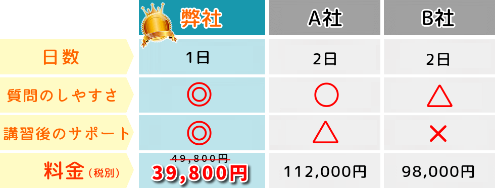 また、他社の講習では、自社の協力業者になってもらうことが目的でもあるので、親切に教えてくれると思います。